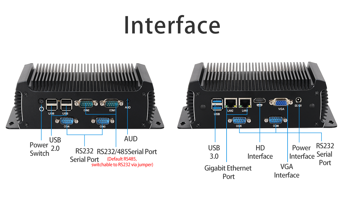 This industrial mini PC is equipped with a higher configuration to meet more industrial needs. It is equipped with the Intel Core i3 - 4158U processor, boasting 2 cores and 4 threads, with a maximum turbo boost frequency of 2.0GHz, while maintaining a power consumption of 28W. The device also includes dual LAN ports and six COM ports, making it perfect for applications that require dependable performance and extensive connectivity.